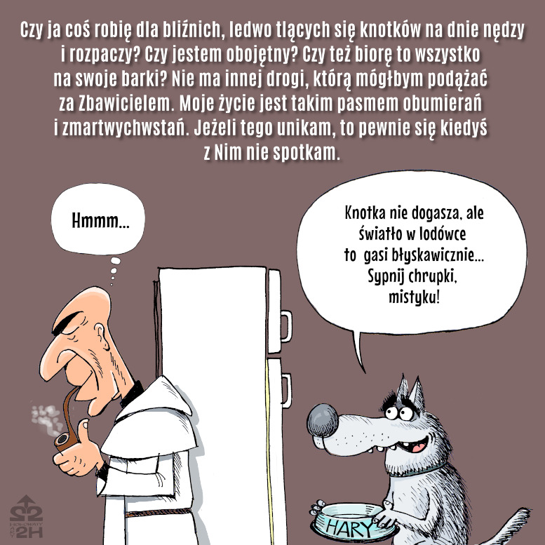 A może jest tak, że nawet podziwiamy niektórych za to kim są i co robią, natomiast w momencie kiedy takiemu człowiekowi podwinie się noga... to właśnie, jakie uczucie w nas dominuje? Załóżmy, że znamy kogoś, komu jesteśmy niechętni, a jednocześnie go w jakiś tam sposób podziwiamy – jeśli jestem świadkiem jego klęski, co najpierw ze mnie wychodzi? Czy nie jakaś ciemna zła satysfakcja, że oto ten człowiek tak się pysznił, tak wszystko mu wychodziło... i nagle, proszę: Kara Boża bezpośrednia! Każdy z nas chyba ma w swoim sercu takie odruchy i te odruchy nieustannie trzeba unicestwiać.