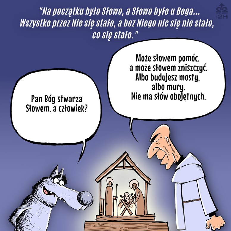 Na jednym z rysunków Goi jest taki napis: „Gdy rozum śpi, budzą się potwory”. Ja bym powiedział, że gdy rozum, tylko rozum czuwa, bez serca, wtedy dopiero budzą się potwory, stokroć gorsze niż w tej poprzedniej sytuacji. I wydaje mi się, że te dwa opisy Bożego Narodzenia – ten jeden, taki bardzo sentymentalny, ciepły, który kojarzy nam się z wigiliami w domu rodzinnym, i ten drugi, dzisiejszy, kiedy bardzo na serio święty Jan mówi, że to Sens świata przyjął postać człowieka – są komplementarne i uzupełniają się w naszym życiu. I mówią nam ni mniej, ni więcej, tylko, że słowo jest niezmiernie ważne. Pan Bóg stwarza Słowem, ale każdy z nas ma udział w tym stwarzaniu.